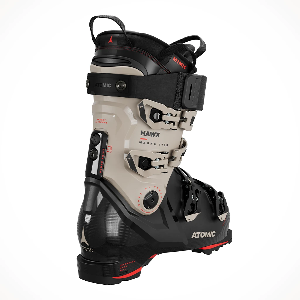 For aggressive skiers with a wider foot seeking endless hours on the snow, the mid-range flex Atomic Hawx Magna 110 S GW ski boot is the solution. Now made with the same Prolite shell construction as the Prime and Ultra models, this boot provides stability through reinforcement in key zones for powerful skiing performance. With a comfortable foot hold thanks to the pre-shaped Mimic Gold liner, heat molding allows the material to mimic the precise shape of your foot. Customize with Power Shift– which lets you adjust forward lean and stiffness. GripWalk Grip Pads offer more traction for walking with the power transfer of a standard alpine sole. The asymmetrically shaped 3D Stretch Toe Box allows for a little extra length when important millimeters are required to achieve the perfect fit.