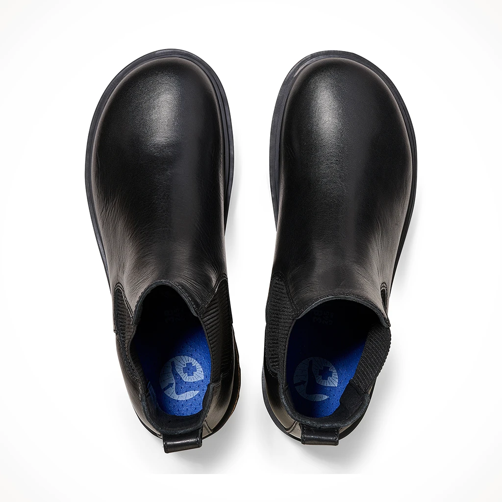 Heritage inside and out. The new Highwood boot is crafted with the finest natural leather and a BIRKENSTOCK cork PU midsole, hinting at the legendary comfort within. Inside, a premium Deep Blue Footbed provides layers of support, with a moisture-wicking lining and PU base that optimizes your natural walking motion. Tread comfortably.