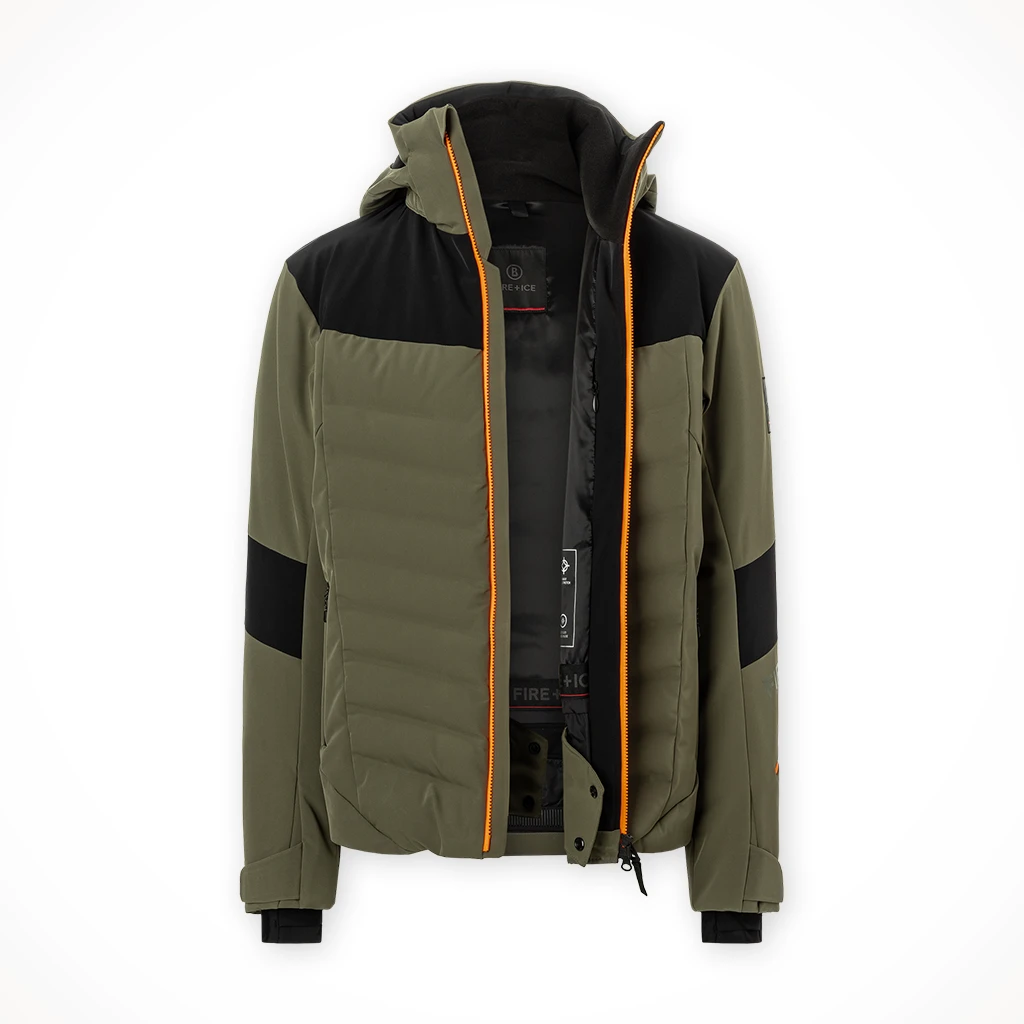 Made from weather-resistant technical four-way stretch fabric with comfortable padded quilting and taped, zippered pockets, the Radek ski jacket shows its worth as an alpine all-rounder for high-performance challenges. A detachable hood, a brand-signature snow skirt and iconic logo details complete the piece.