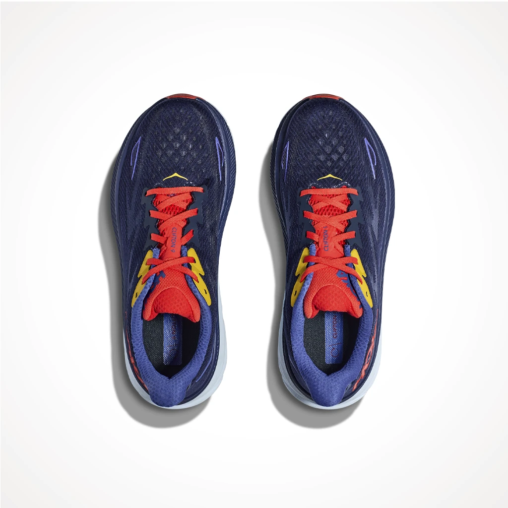 The ninth iteration of the award-winning Clifton franchise has launched, lighter and more cushioned than ever before. Eliminating weight while adding 3mm in stack height, the new Clifton 9 delivers a revitalized underfoot experience with a responsive new foam and improved outsole design. Removing overlays and hotmelts, the stripped back upper has been consciously crafted with a plusher heel, reflective heel panel, and streamlined tongue with single side medial gusset.