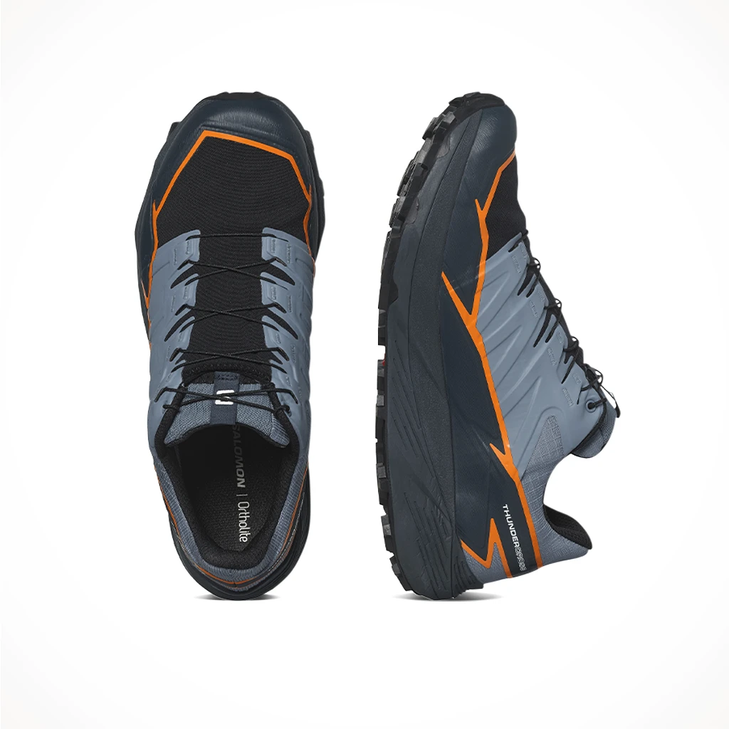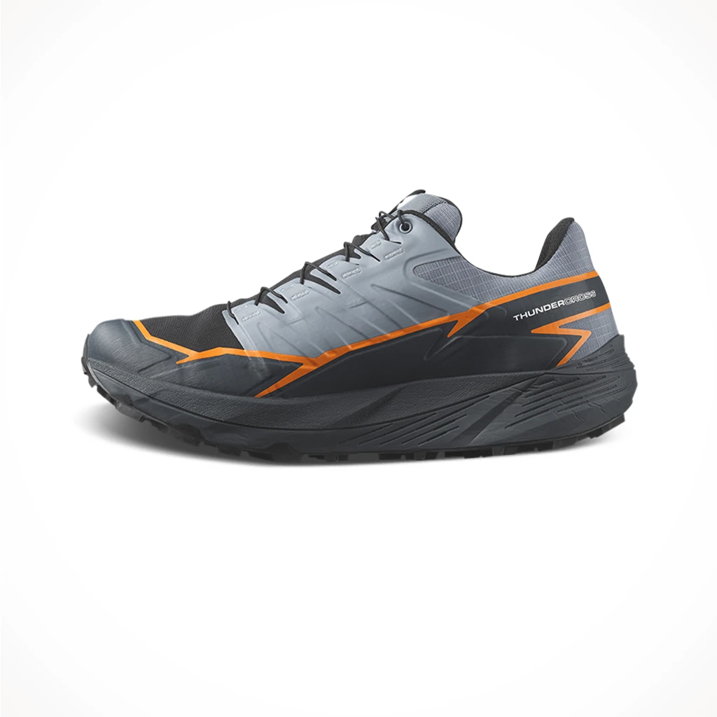 The Salomon Thundercross GORE-TEX is a waterproof trail shoe for a dynamic, cushioned ride with superior grip and foothold. Equipped with aggressive 5mm lugs to tackle any terrain, no matter how tricky, technical, or just downright nasty. Developed in the French Alps, tried and tested on everything from rolling terrain to rocky slopes and sticky single tracks.