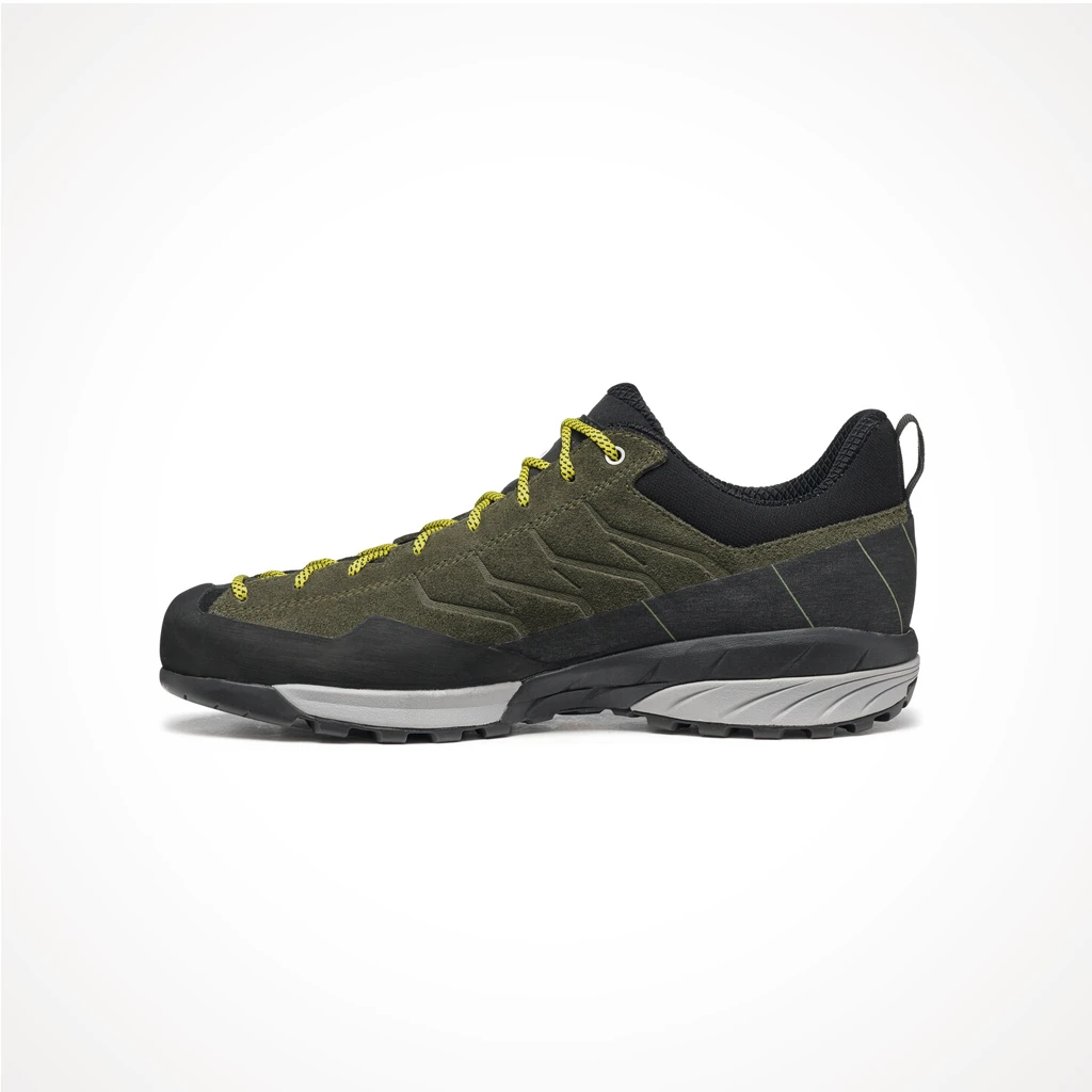The Mescalito is a premium approach shoe designed for technical hikes into remote alpine objectives. With rugged, reinforced construction, full rand protection and a sticky rubber outsole, the Mescalito is the ultimate combination of durability and lightweight performance. The toe rand contains 20% recycled rubber.