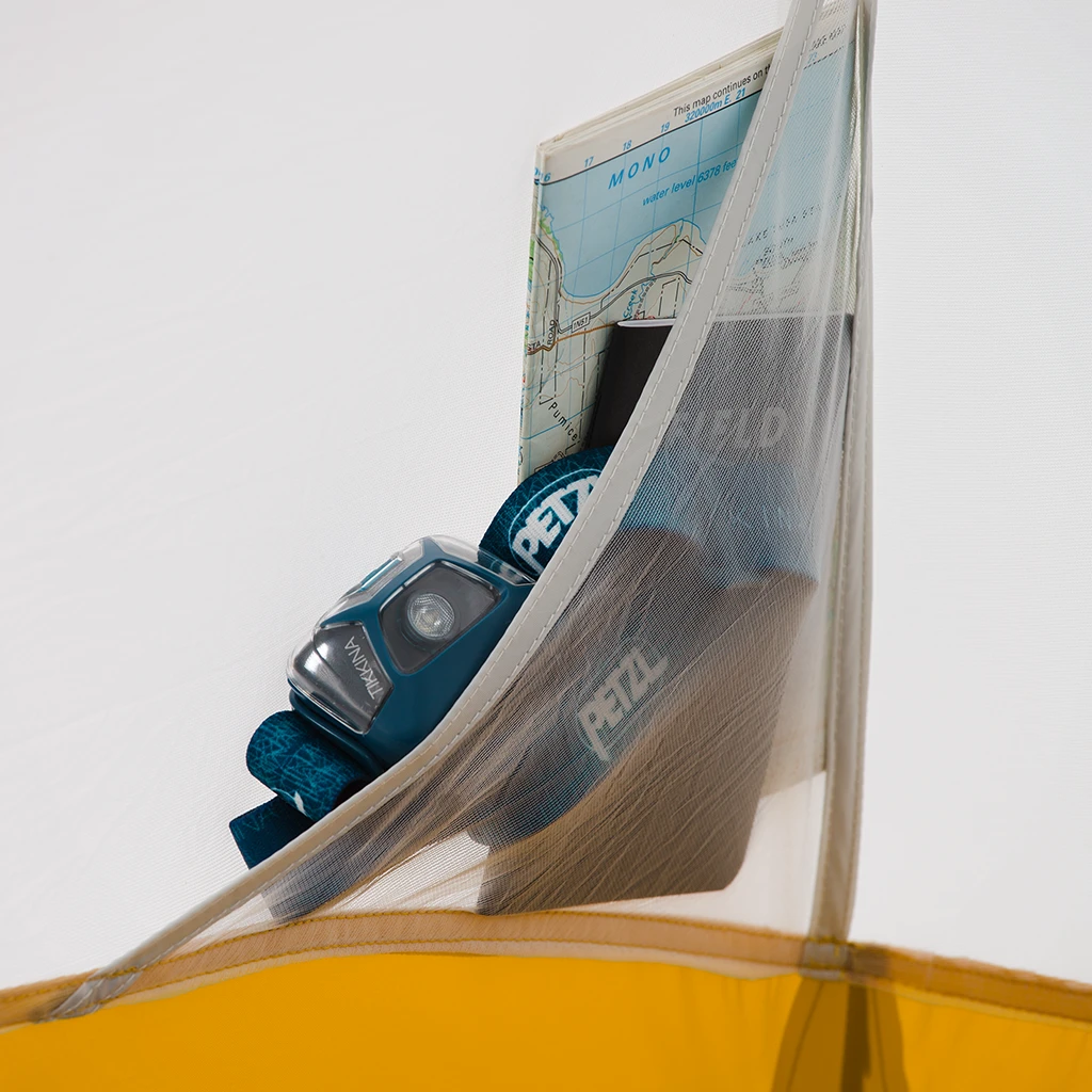 - Ceiling pockets hold headlamps, lights, tablets and more