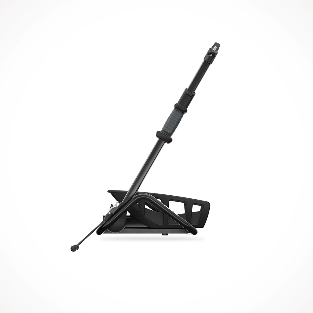 - Quickly secure the bike without frame contact using the ratcheting arm.