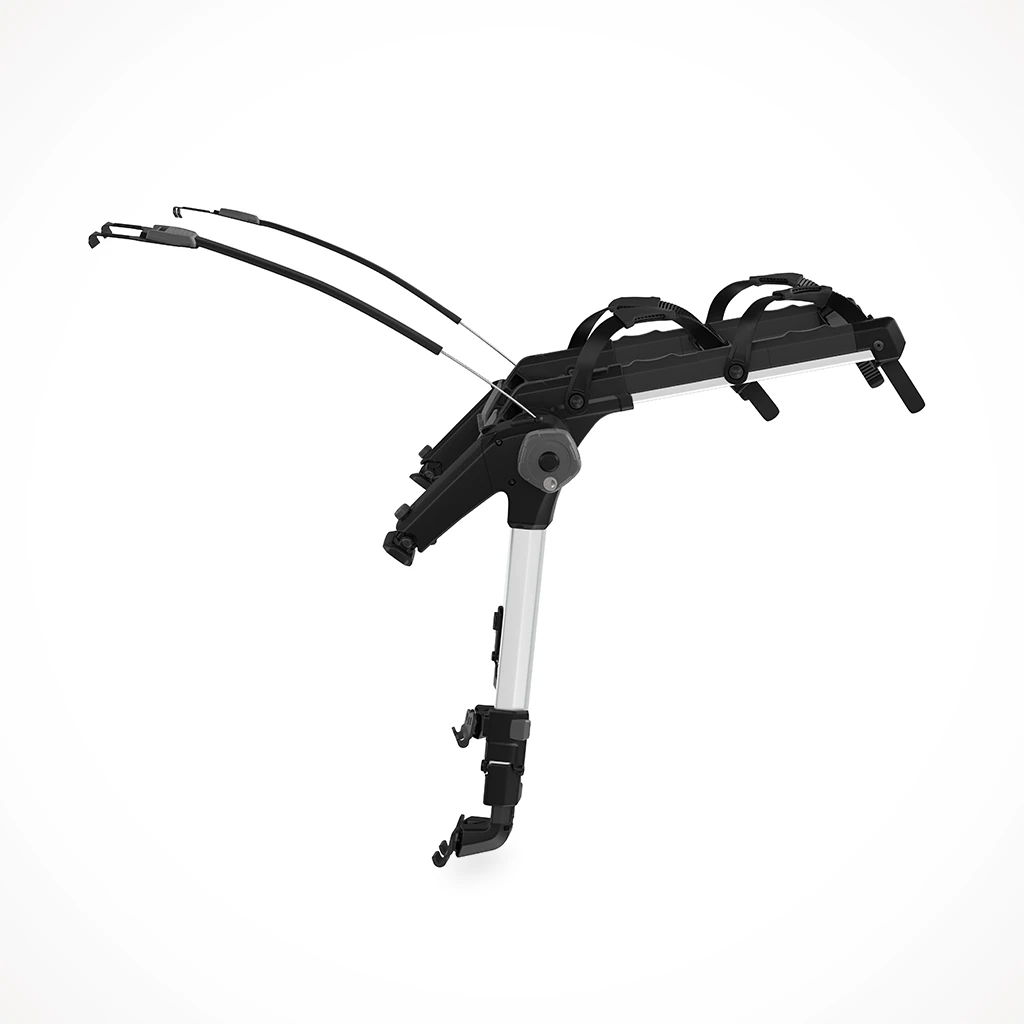 - Bike arms fold down when not in use, and rack folds flat for easy transport and convenient storage.